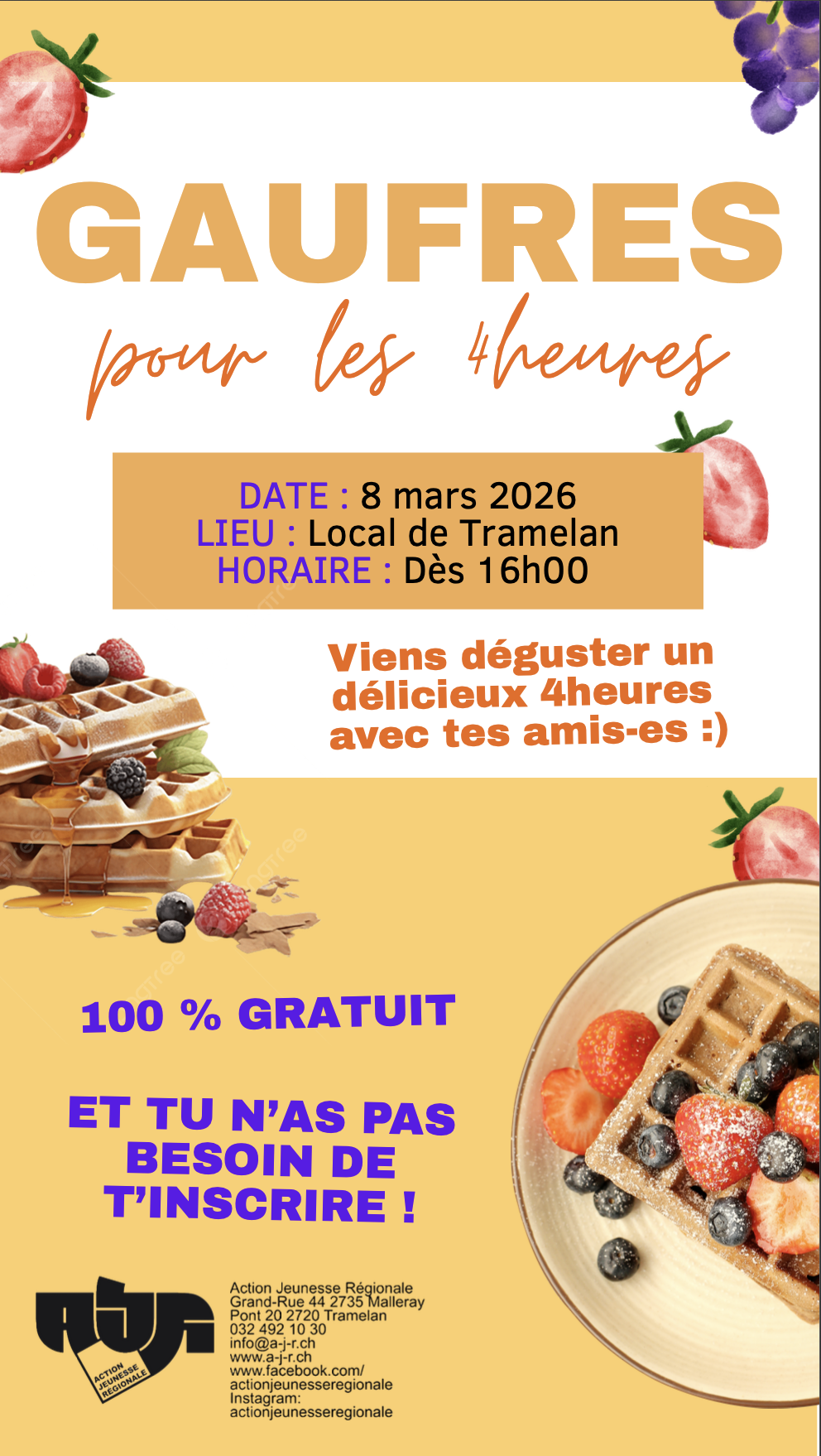 Affiche horaires du mois de février 2026